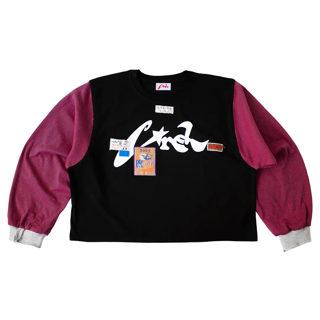 - Remera de pique color azul + rework mangas de pique color gris claro y puños color verde + diseño de etiquetas.