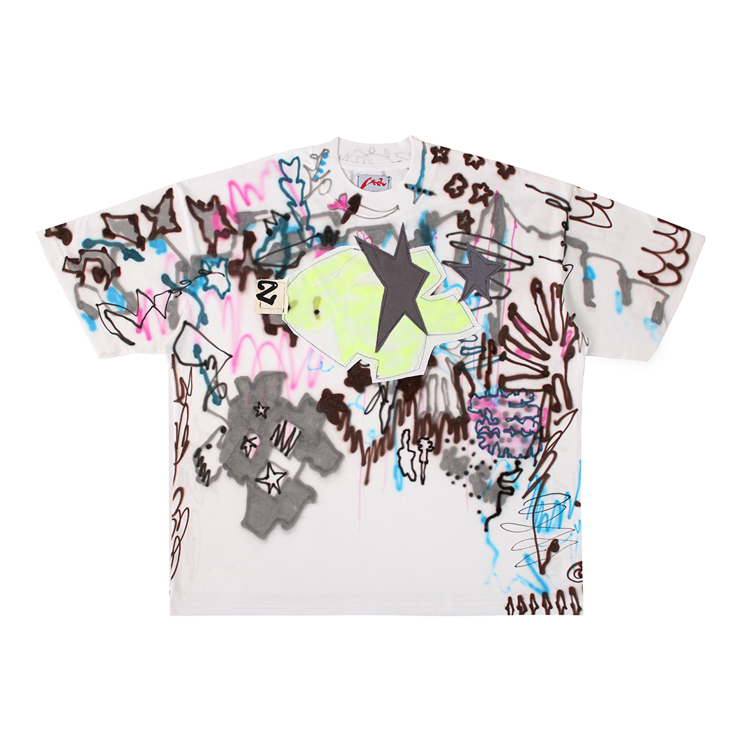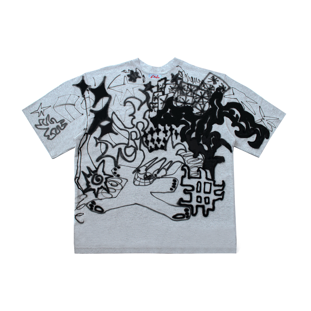 - Remera de algodón color gris plomo + handpainted airbrush.