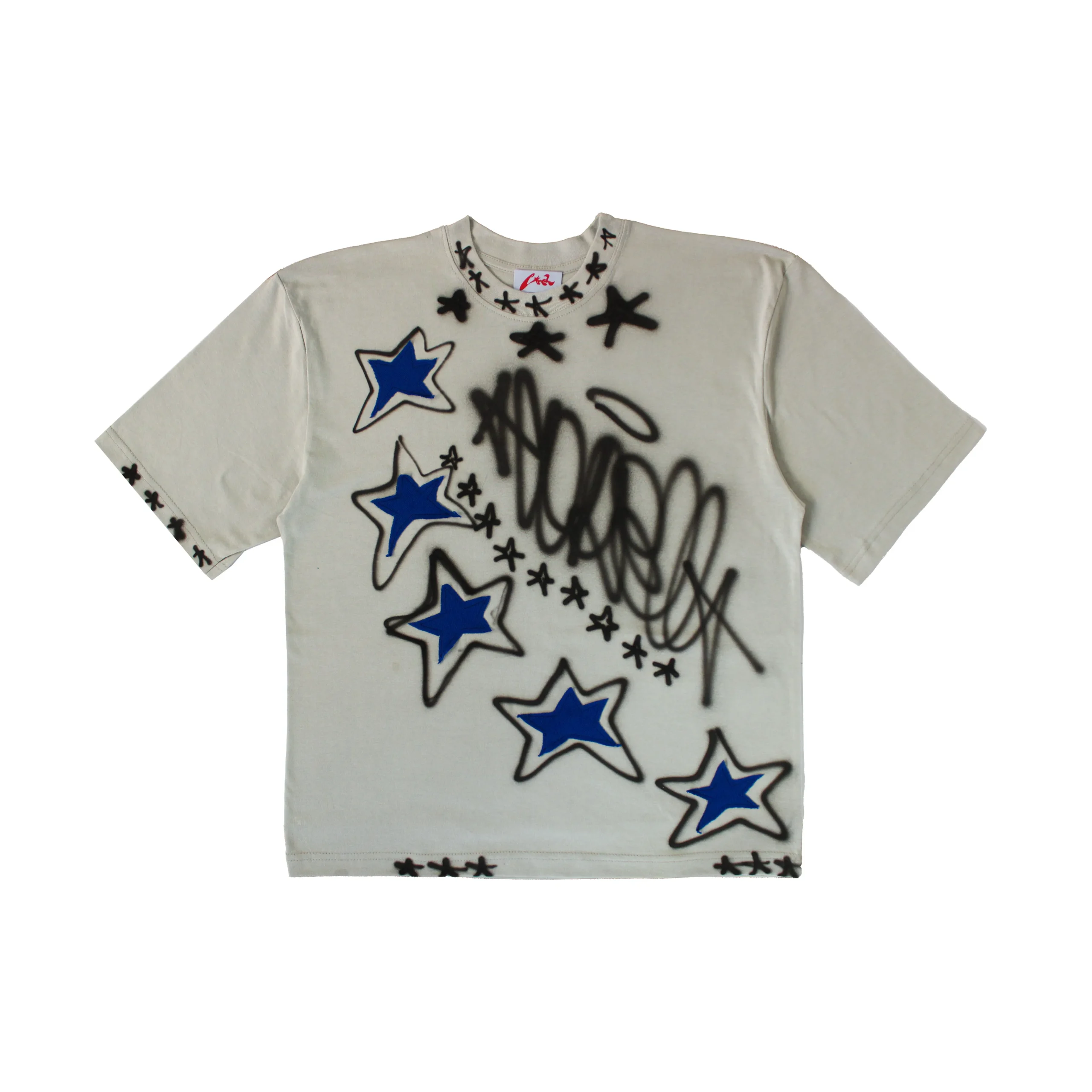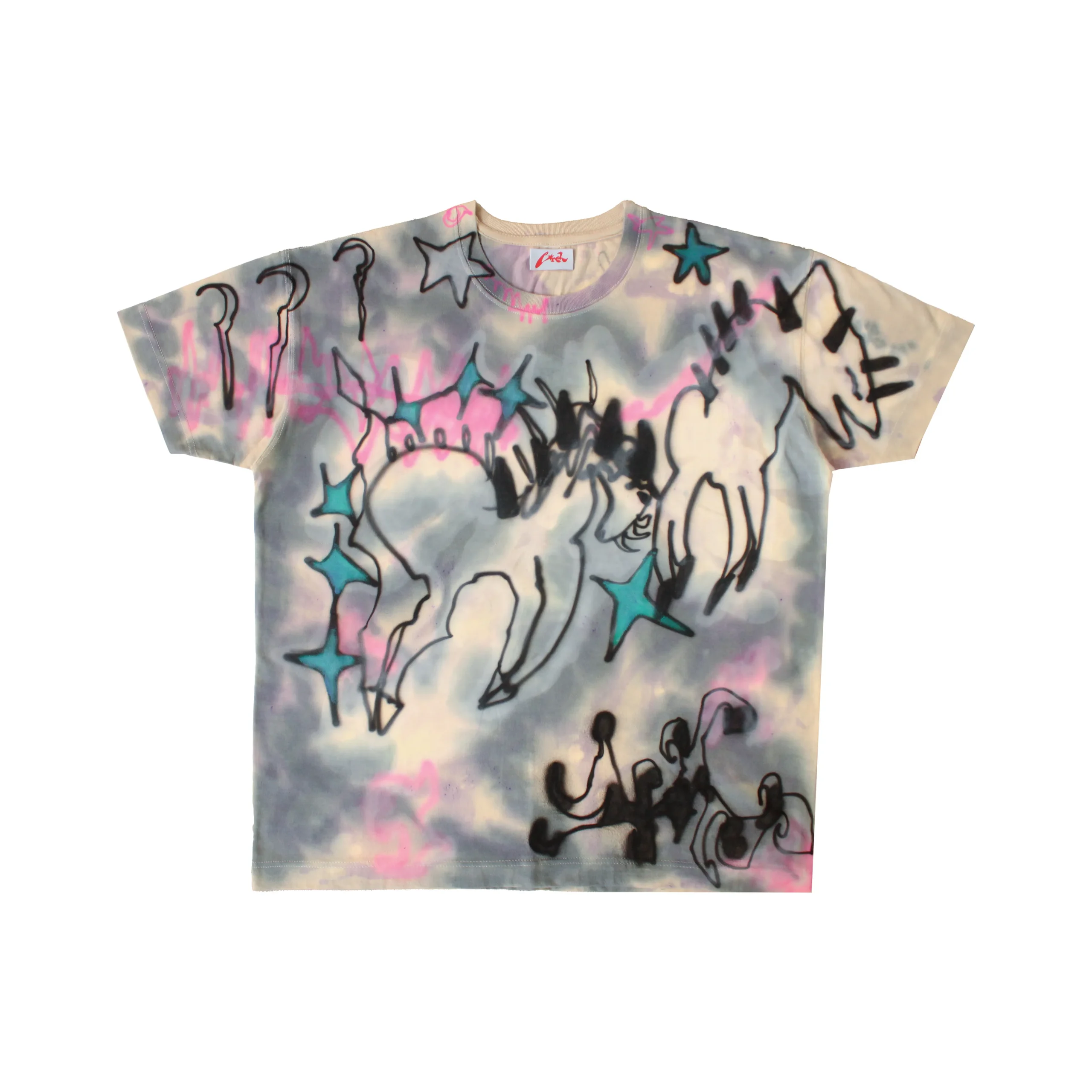 - Remera de algodón color cemento + handpainted airbrush.